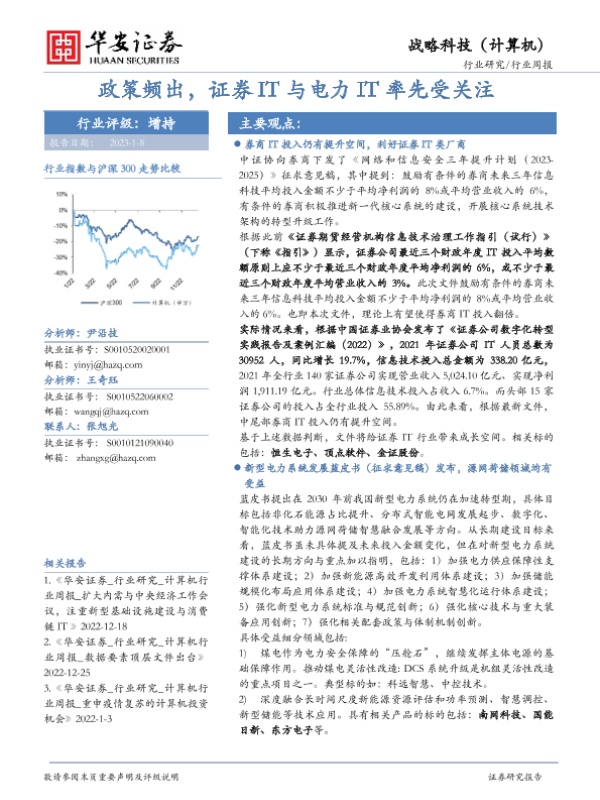 【华安证券】【20230108】战略科技(计算机)行业周报:政策频出,证券IT与电力IT率先受关注-16页