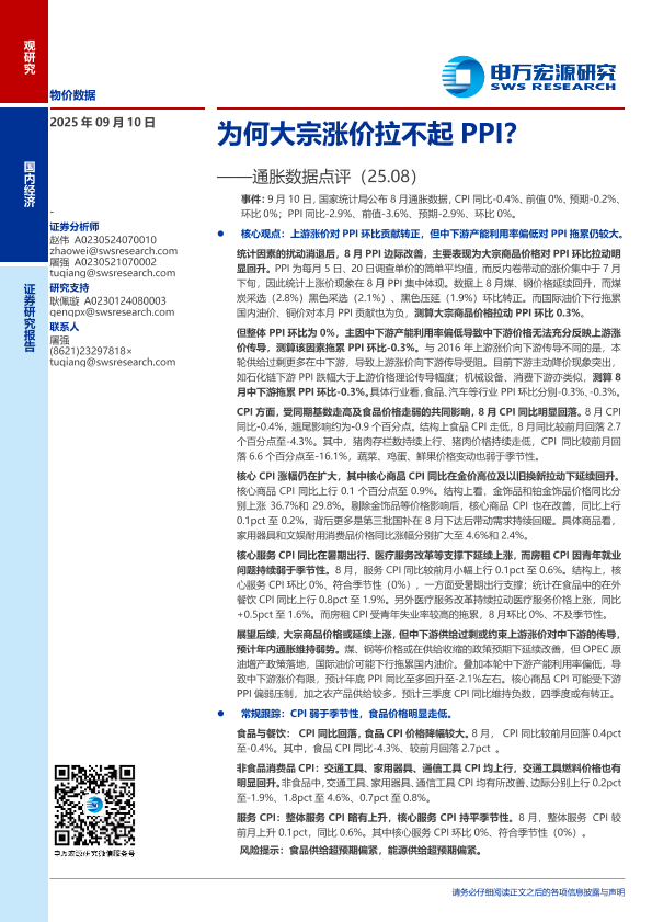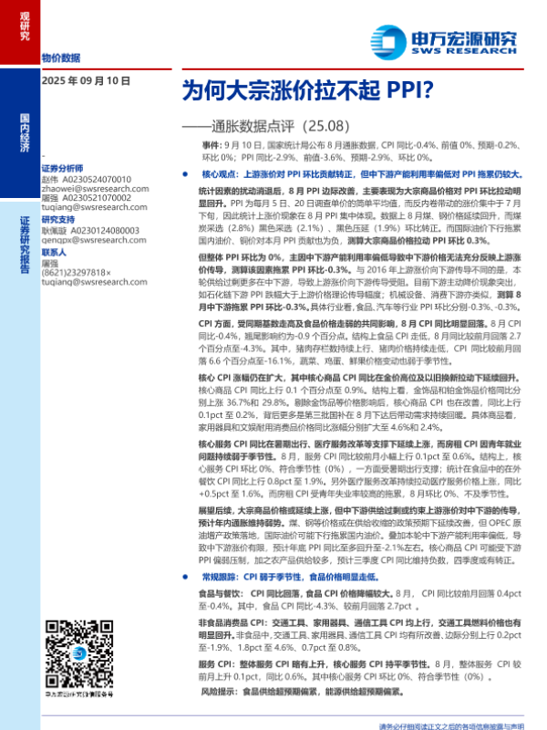 【申万宏源】【202508】为何大宗涨价拉不起PPI?——通胀数据点评(25.08)-10页