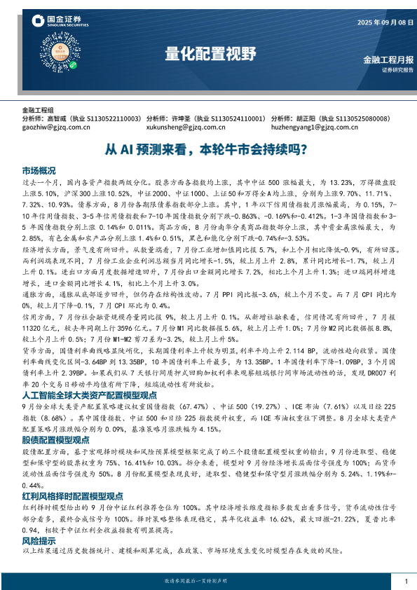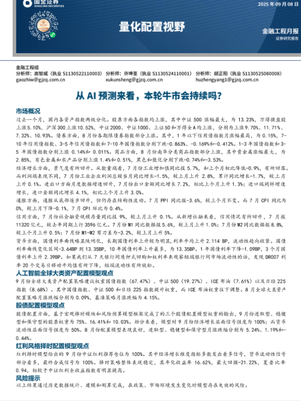 【国金证券】【202509】量化配置视野:从AI预测来看,本轮牛市会持续吗?-11页