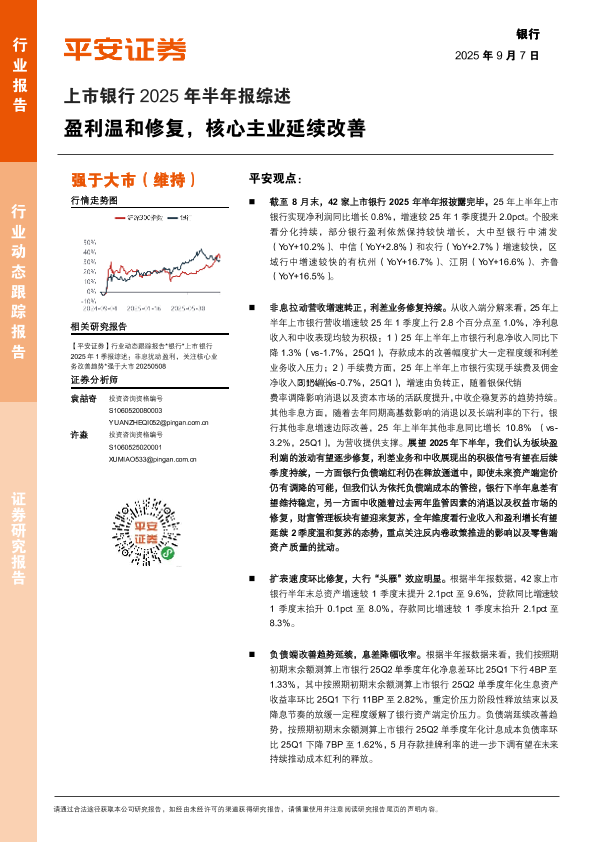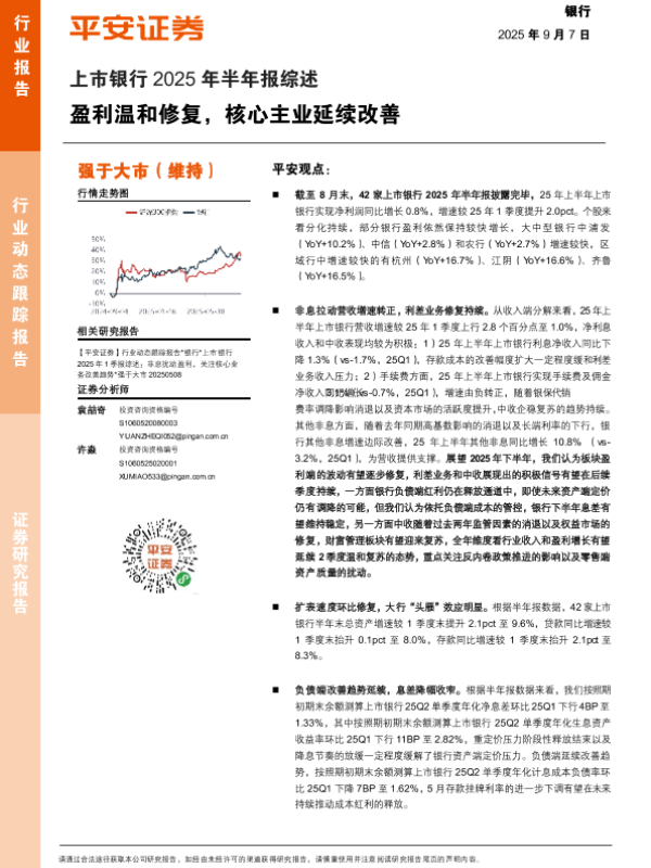 【平安证券】【202509】上市银行2025年半年报综述:盈利温和修复,核心主业延续改善-20页