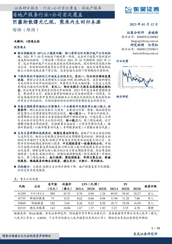 【东吴证券】【20230112】房地产服务行业+公司首次覆盖:阴霾渐散曙光已现,聚焦内生回归本源-42页