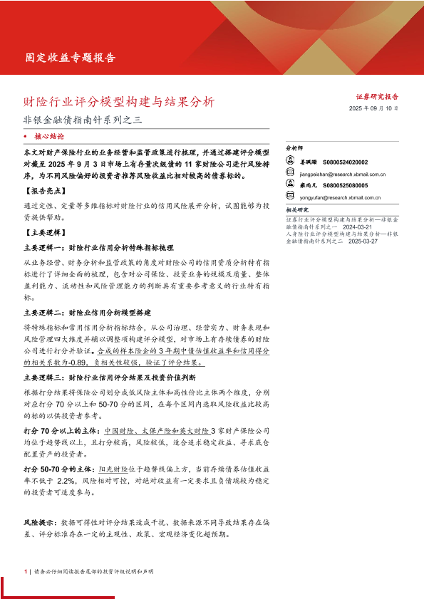 【西部证券】【202509】财险行业评分模型构建与结果分析-26页