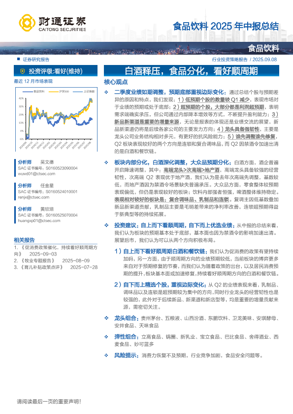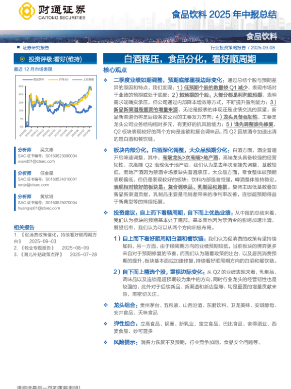 【财通证券】【202509】食品饮料2025年中报总结:白酒释压,食品分化,看好顺周期-34页