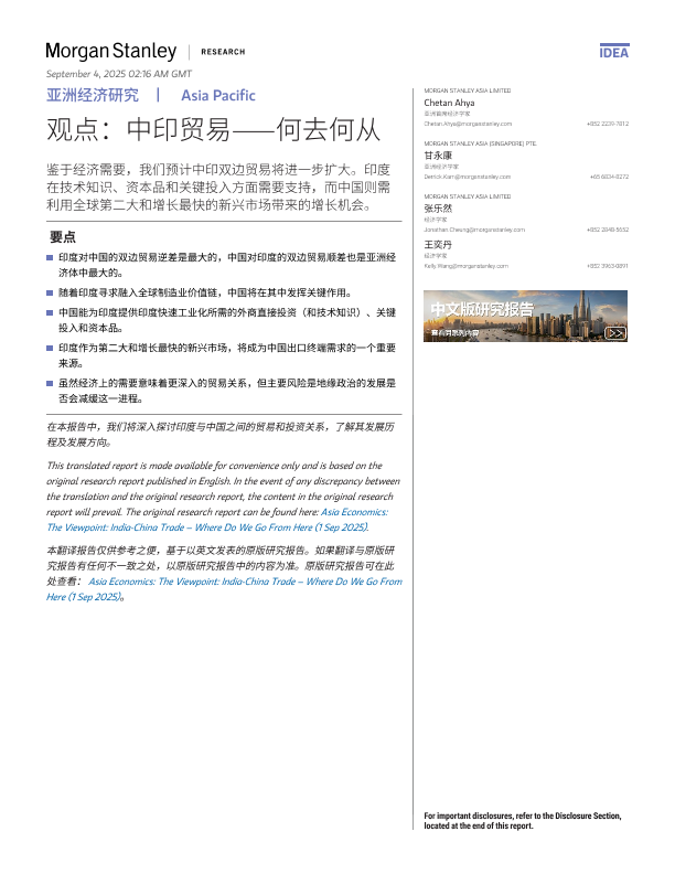 【Morgan Stanley Asia Limited&Morgan Stanley Asia(Singapore) Pte.】【202509】中印贸易——何去何从-12页