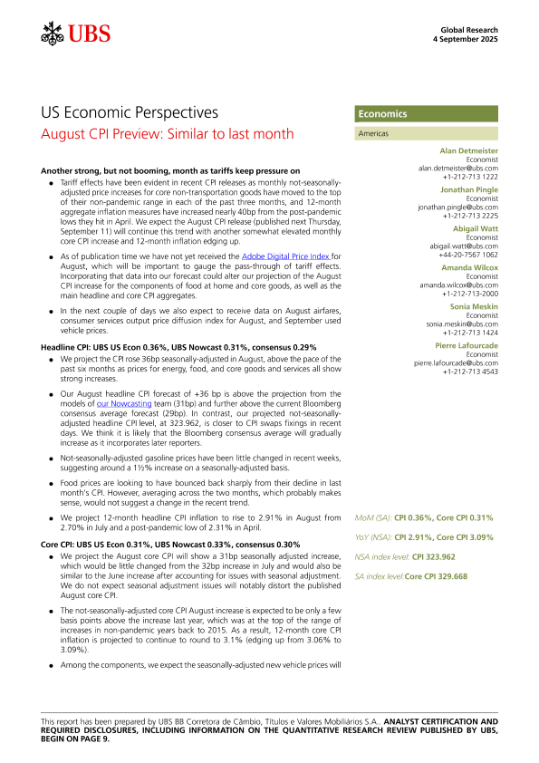 【UBS BB Corretora de Câmbio&Títulos e Valores Mobiliários S.A.】【202509】August CPI Preview Similar to last month-12页