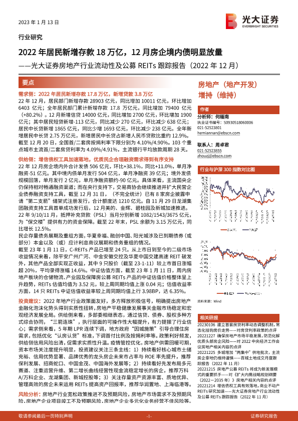 【光大证券】【20230113】地产行业流动性及公募REITs跟踪报告(2022年12月)-23页