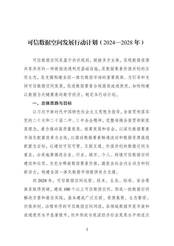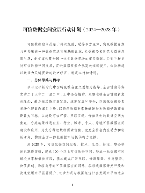 【国家数据主管部门】【2024】可信数据空间发展行动计划(2024—2028年)-15页