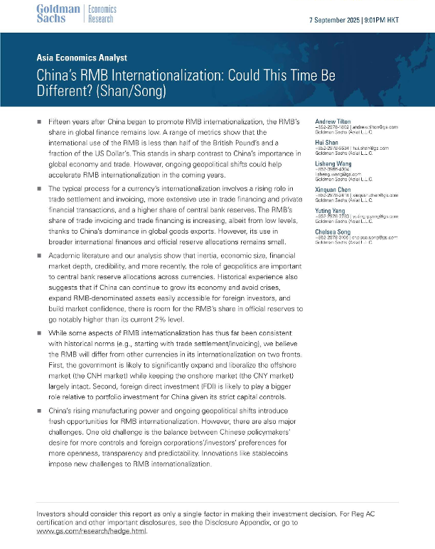 【Goldman Sachs】【202509】中国的人民币国际化:这次会有所不同吗?-17页