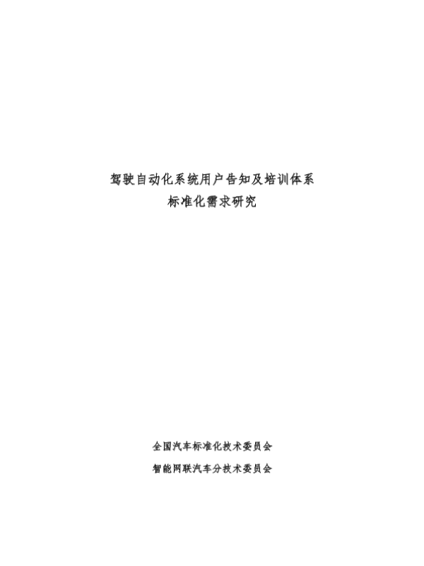 【全国汽车标准化技术委员会智能网联汽车分技术委员会】【202312】2025年驾驶自动化系统用户告知及培训体系标准化需求研究报告-44页