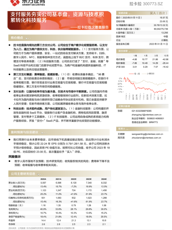 【东方证券】【20230111】拉卡拉首次覆盖报告(300773):支付服务夯实公司基本盘,资源与技术积累转化科技服务-24页