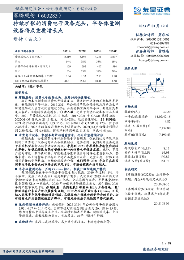 【东吴证券】【20230112】持续扩张的消费电子设备龙头,半导体量测设备将成重要增长点-28页