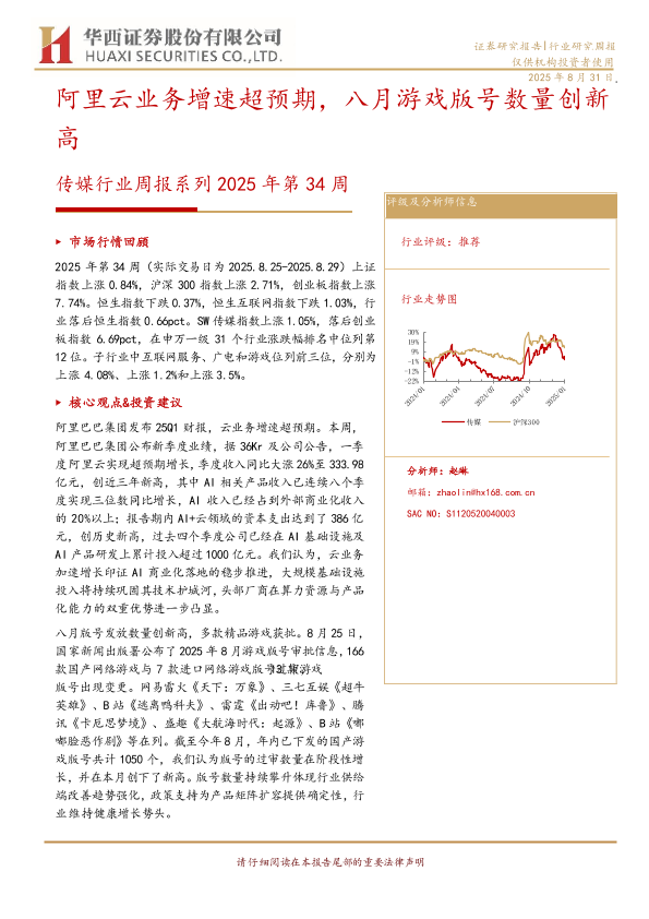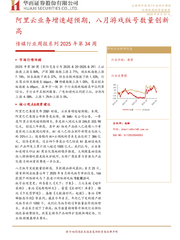 【华西证券】【202508】阿里云业务增速超预期,八月游戏版号数量创新高-14页