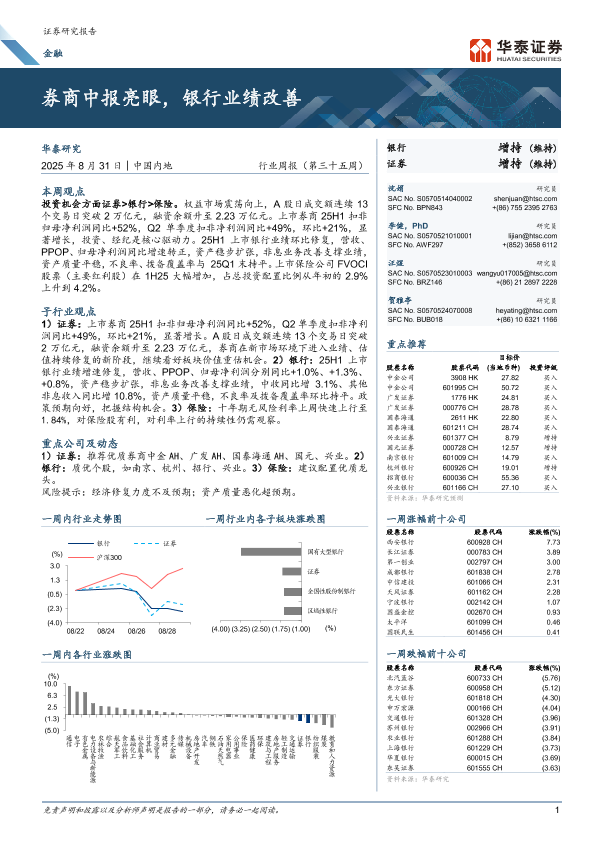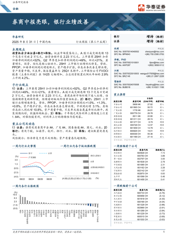 【华泰证券】【202508】券商中报亮眼,银行业绩改善-26页