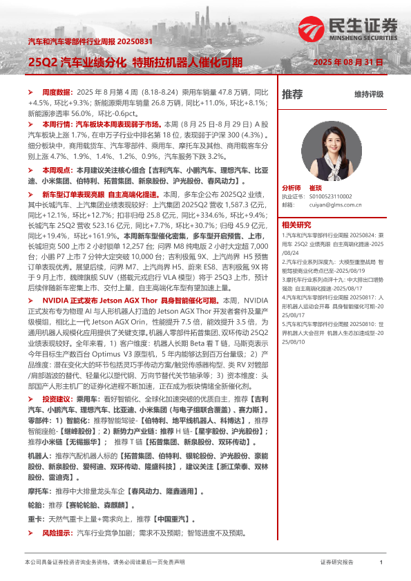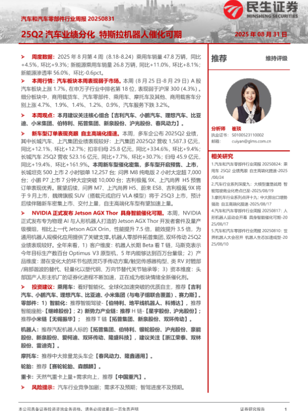 【民生证券】【202508】25Q2汽车业绩分化 特斯拉机器人催化可期-28页