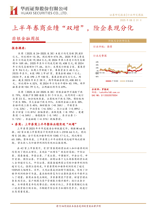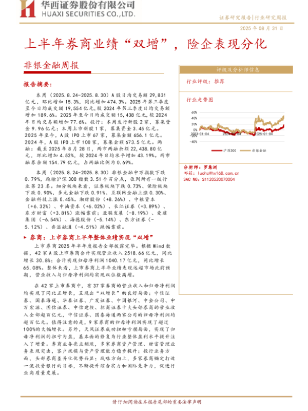 【华西证券】【202508】非银金融周报:上半年券商业绩“双增”,险企表现分化-11页
