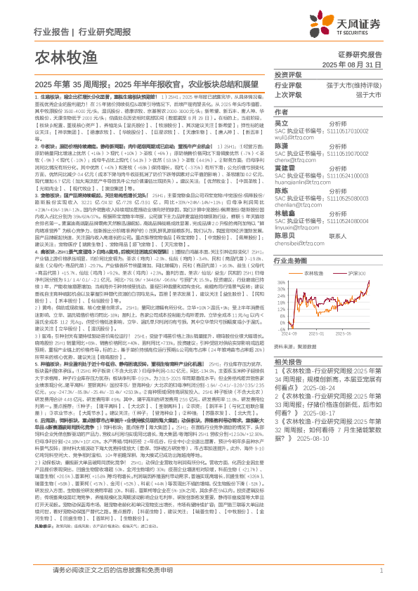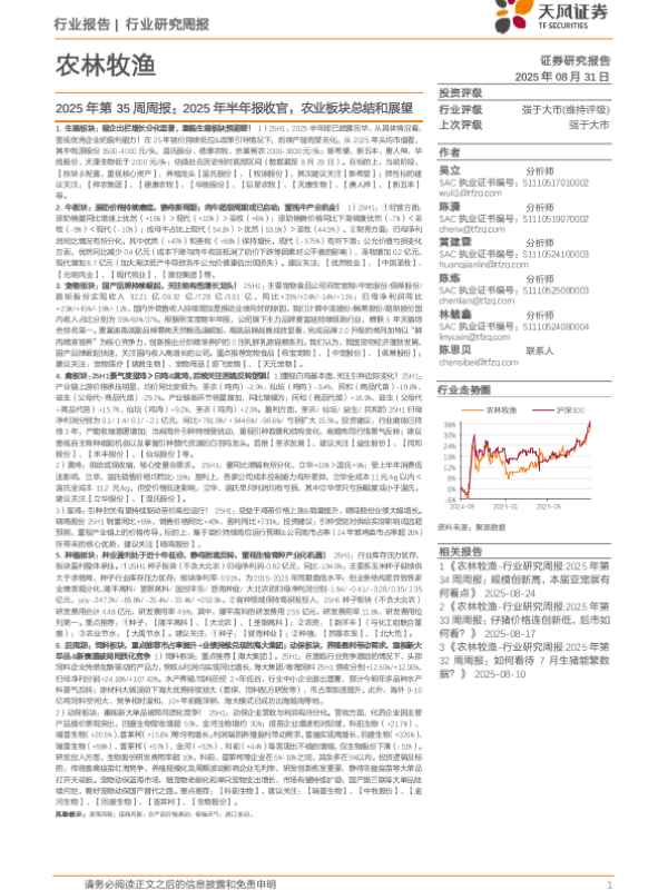 【天风证券】【202508】农林牧渔行业2025年第35周周报:2025年半年报收官,农业板块总结和展望-17页