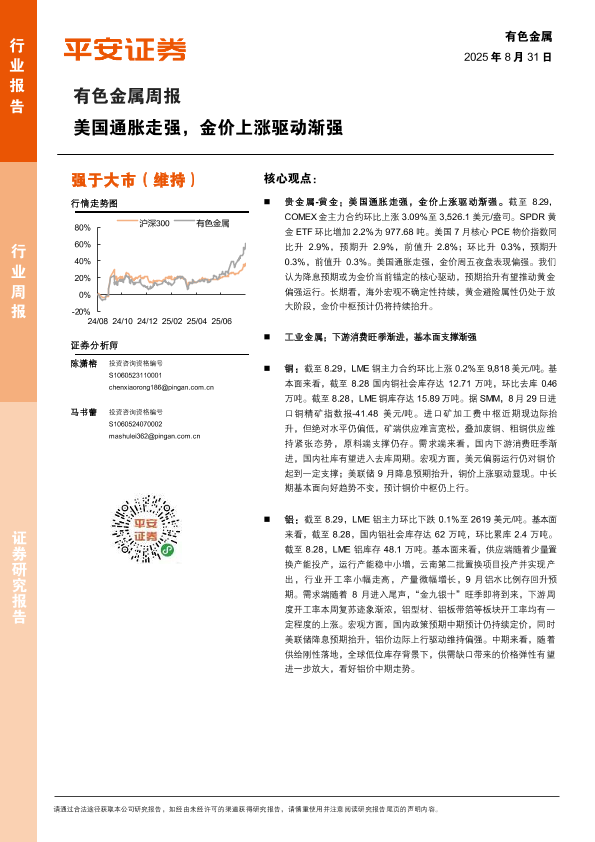 【平安证券】【202508】有色金属周报:美国通胀走强,金价上涨驱动渐强-13页