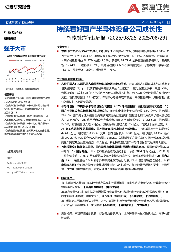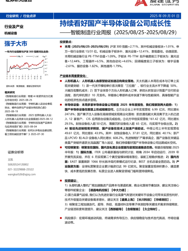 【爱建证券】【202509】持续看好国产半导体设备公司成长性——智能制造行业周报(2025/08/25-2025/08/29)-15页