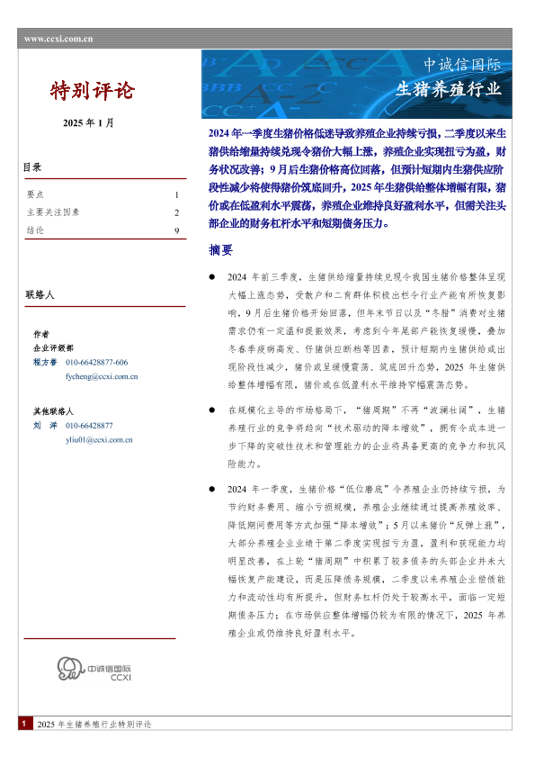 【中诚信国际】【202501】2025年生猪养殖行业特别评论-11页