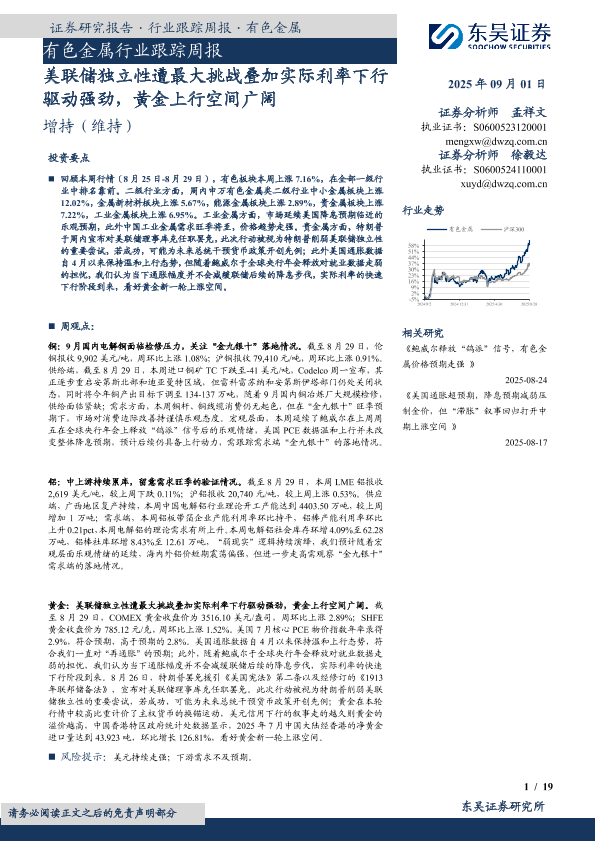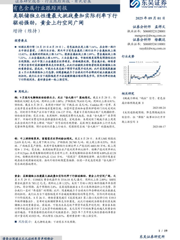 【东吴证券】【202509】美联储独立性遭最大挑战叠加实际利率下行驱动强劲,黄金上行空间广阔-19页