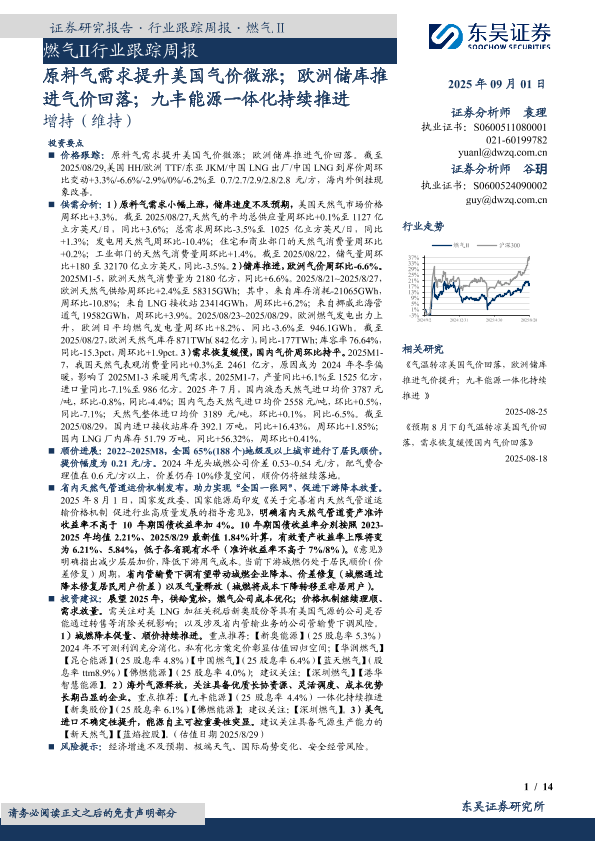 【东吴证券】【202509】燃气Ⅱ行业跟踪周报-14页