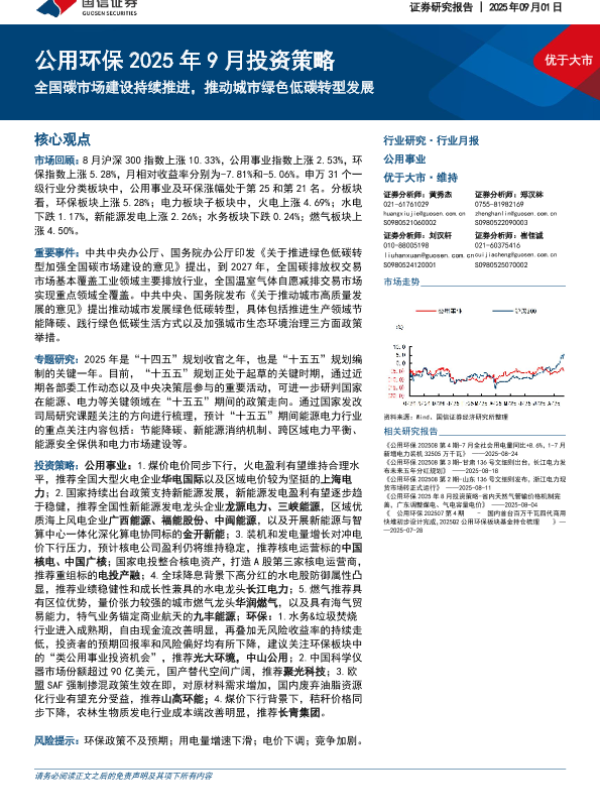 【国信证券】【202509】公用环保2025年9月投资策略:全国碳市场建设持续推进,推动城市绿色低碳转型发展-31页