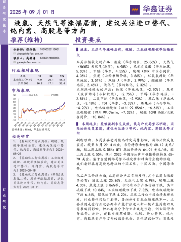 【华鑫证券】【202509】液氯、天然气等涨幅居前,建议关注进口替代、纯内需、高股息等方向-33页