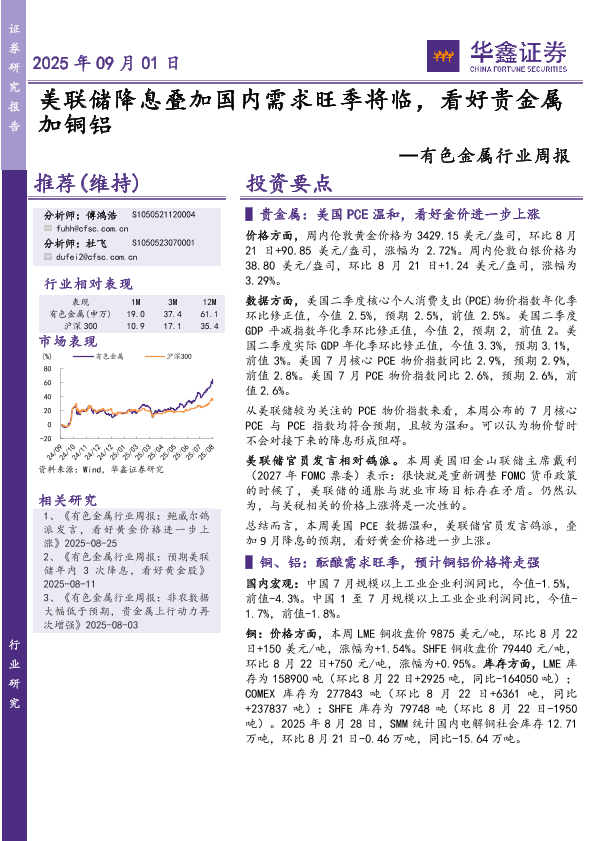 【华鑫证券】【202509】美联储降息叠加国内需求旺季将临,看好贵金属 加铜铝-18页