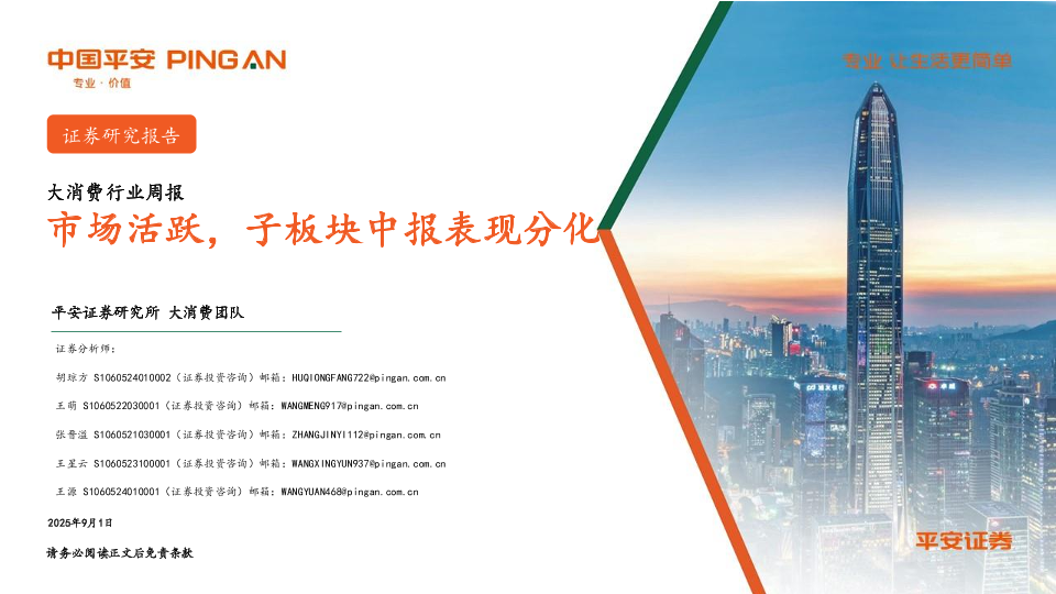 【平安证券研究所大消费团队】【202509】大消费行业周报:市场活跃,子板块中报表现分化-17页