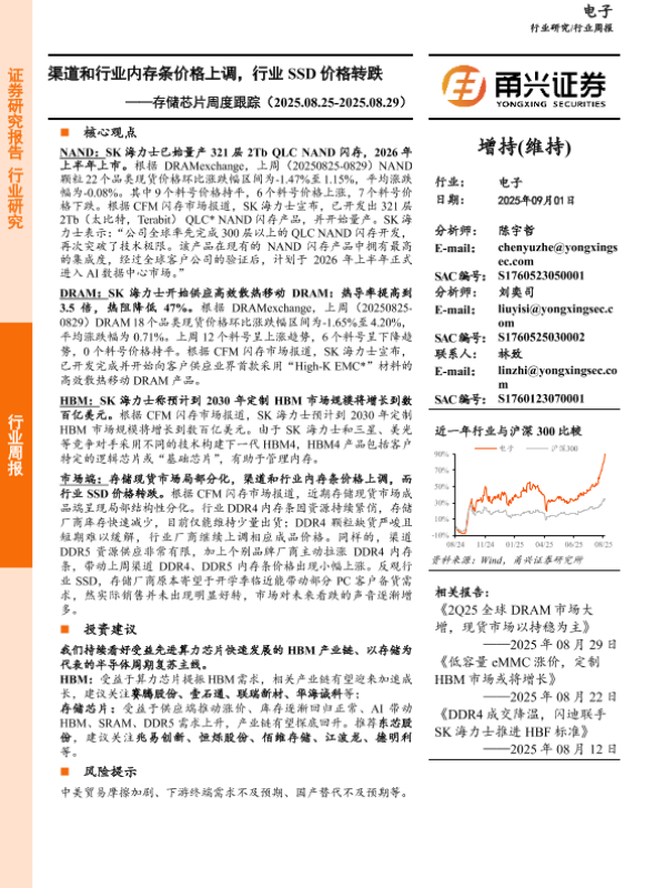 【甬兴证券】【202509】渠道和行业内存条价格上调,行业 SSD价格转跌——存储芯片周度跟踪(2025.08.25-2025.08.29)-10页
