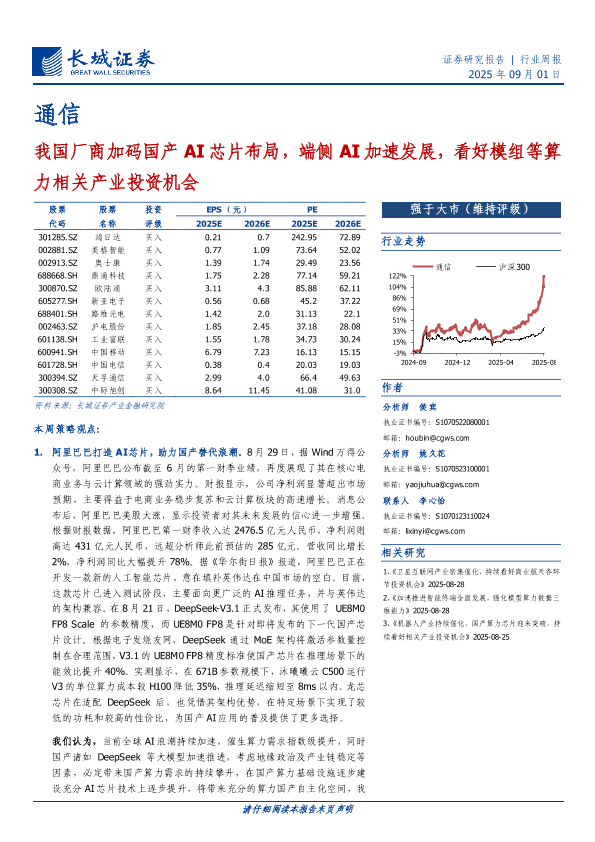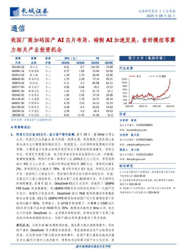 【长城证券】【202509】我国厂商加码国产AI芯片布局,端侧AI加速发展,看好模组等算力相关产业投资机会-17页