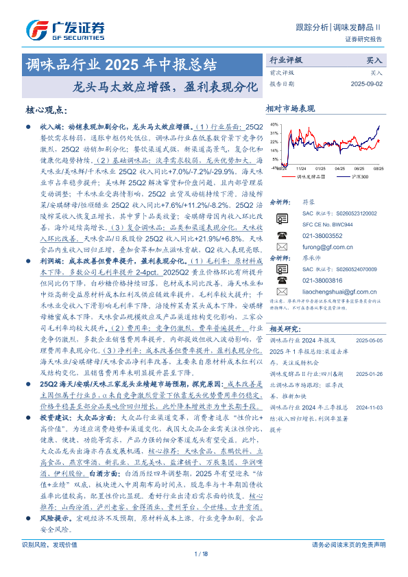 【广发证券】【202509】调味品行业 2025年中报总结 龙头马太效应增强,盈利表现分化-18页