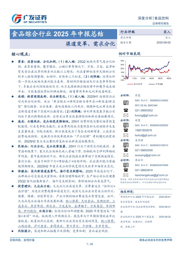 【广发证券】【202509】食品综合行业2025年中报总结:渠道变革,需求分化-33页
