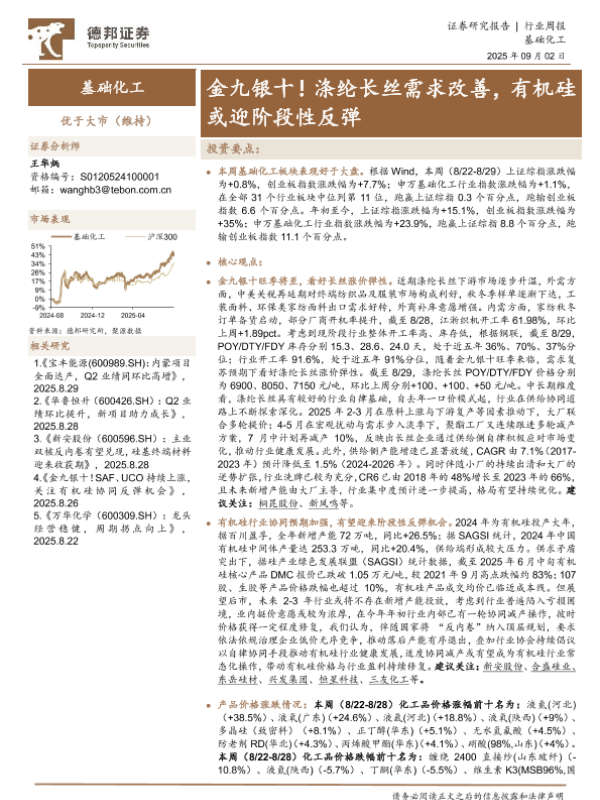 【德邦证券】【202509】金九银十!涤纶长丝需求改善,有机硅或迎阶段性反弹-47页