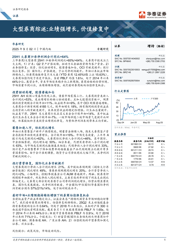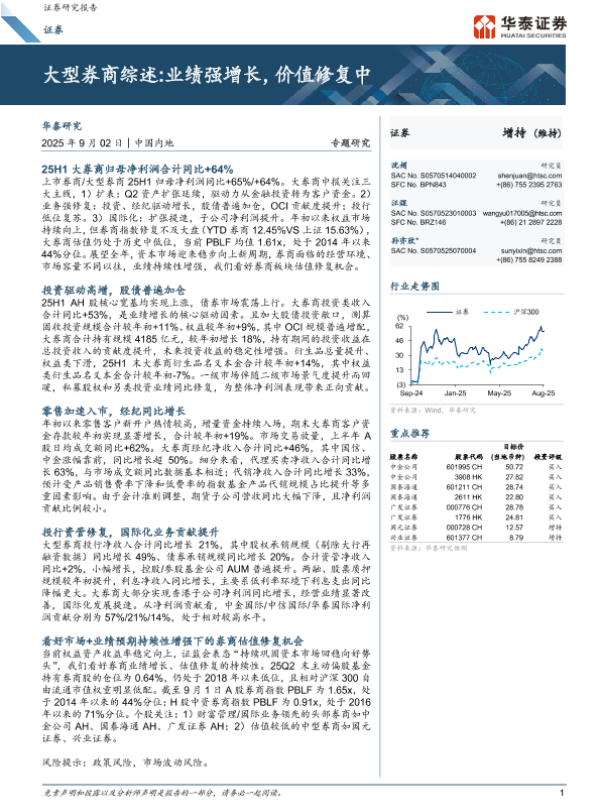 【华泰证券】【202509】大型券商综述 业绩强增长,价值修复中-29页