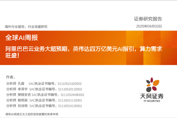 【天风证券】【202509】阿里巴巴云业务大超预期,英伟达四万亿美元AI指引,算力需求旺盛!-14页