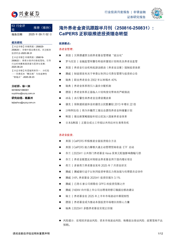 【兴业证券】【202509】海外养老金资讯跟踪半月刊(250816-250831) CalPERS正积极推进投资理念转型-12页