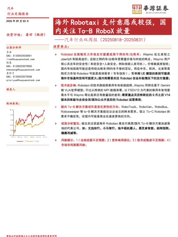 自动驾驶 投资评级 To-B解决方案 海外市场 RoboTaxi