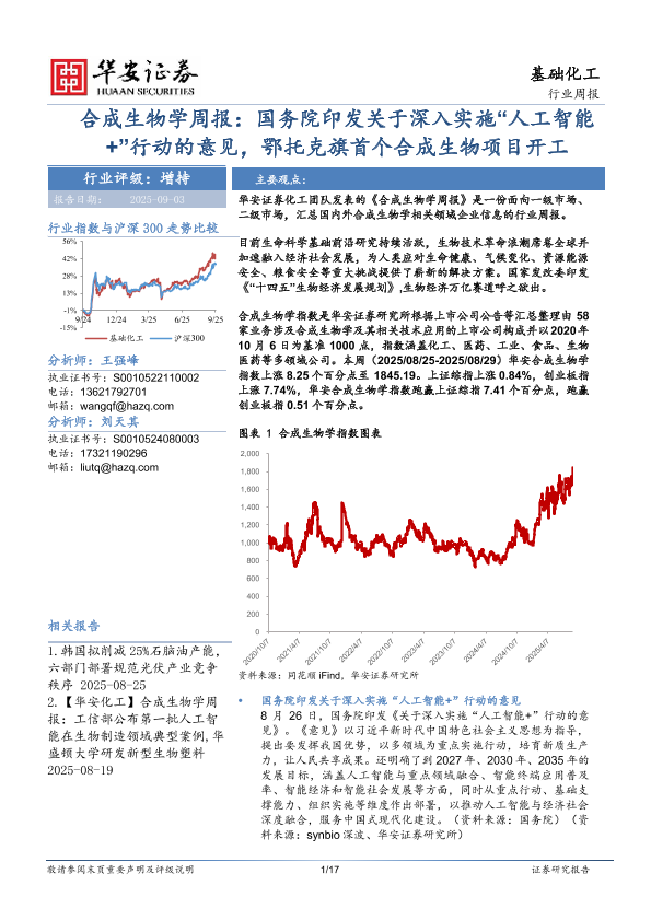 【华安证券】【202509】合成生物学周报:国务院印发关于深入实施“人工智能 +”行动的意见,鄂托克旗首个合成生物项目开工-17页