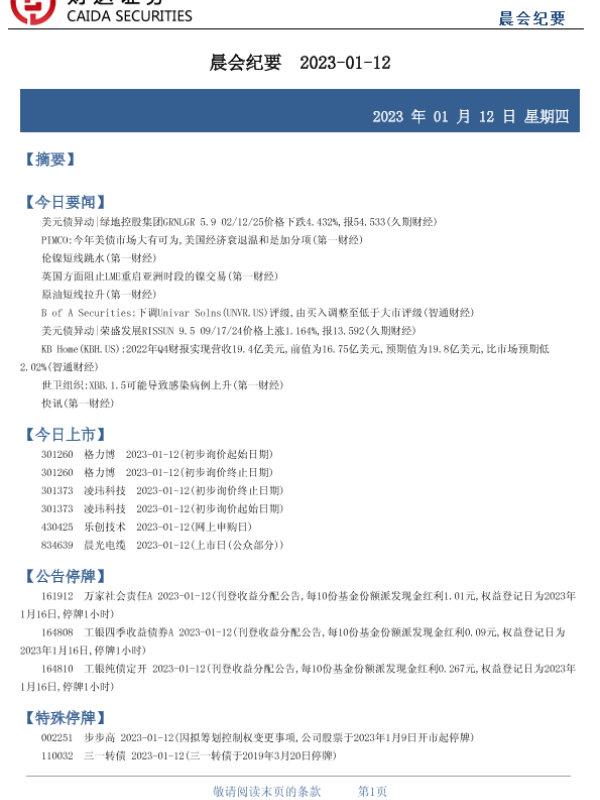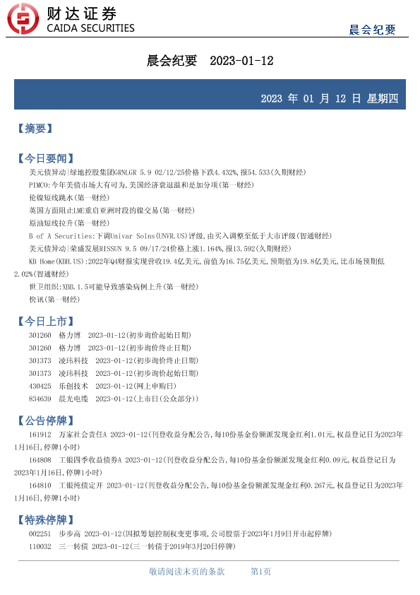 【财达证券】【20230112】晨会纪要-20230112-17页