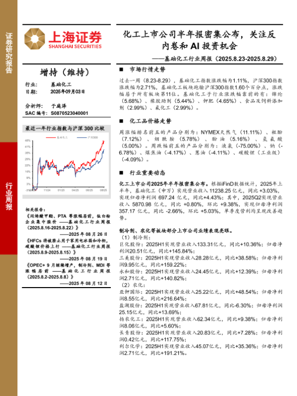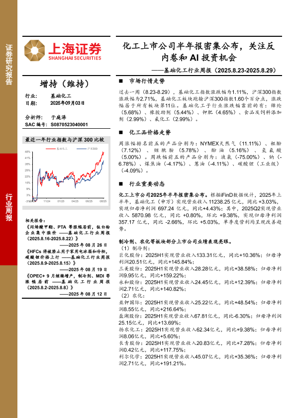 农化 AI投资 基础化工 半年报 制冷剂