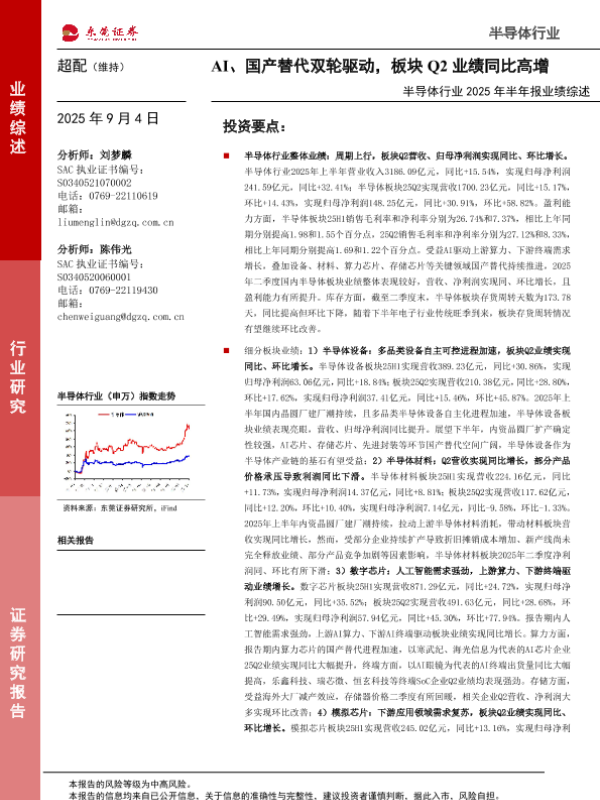 【东莞证券】【202509】半导体行业2025年半年报业绩综述:AI、国产替代双轮驱动,板块Q2业绩同比高增-22页