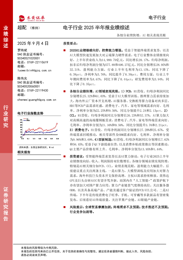 【东莞证券】【202509】电子行业2025半年报业绩综述:各细分业绩快增,AI相关表现亮眼-15页