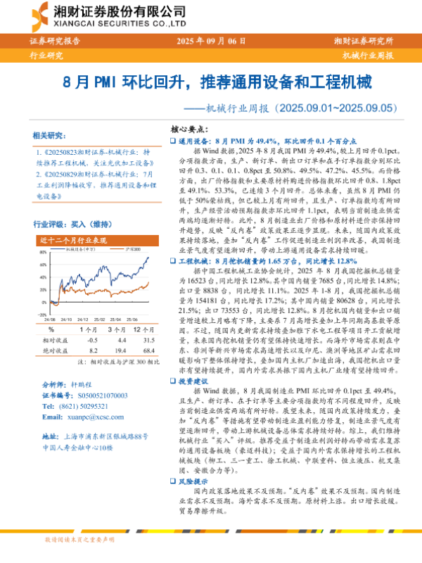 【湘财证券】【202509】8月PMI环比回升,推荐通用设备和工程机械-15页