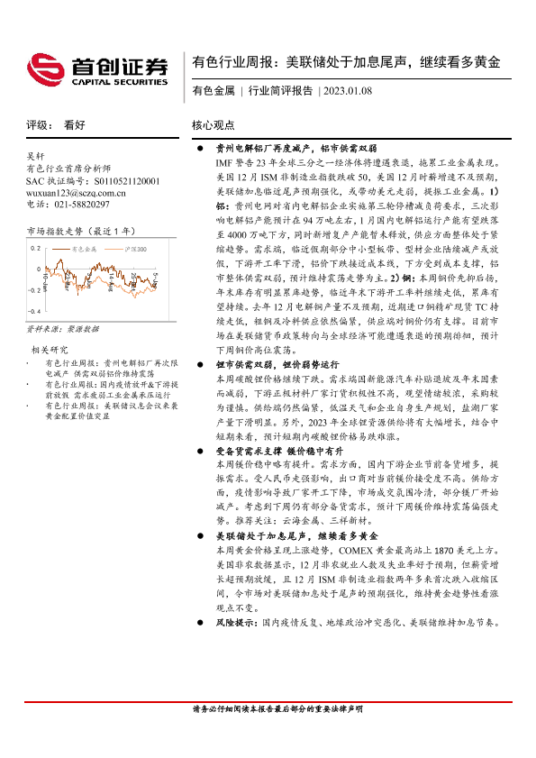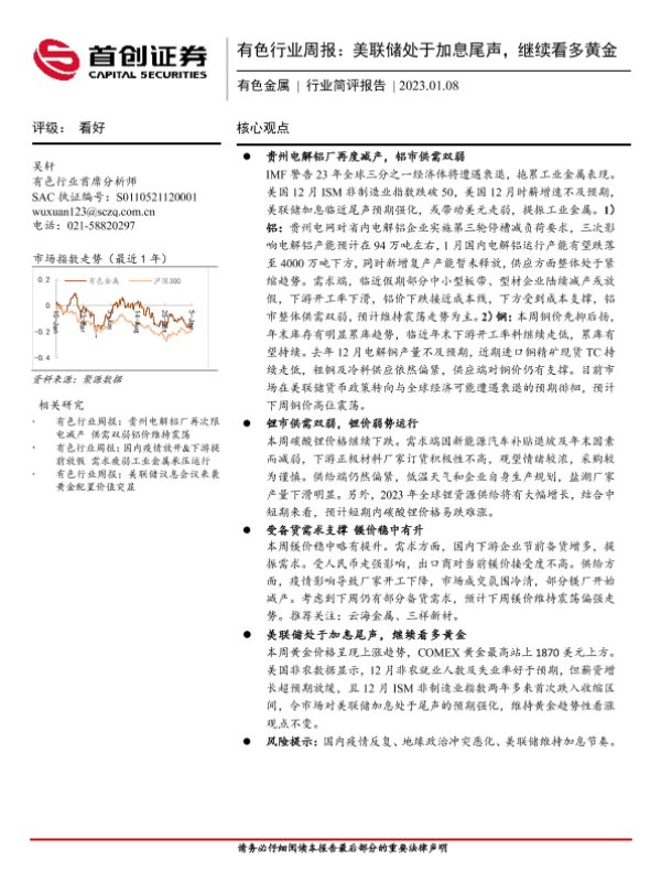 【首创证券】【20230108】有色行业周报:美联储处于加息尾声,继续看多黄金-20页