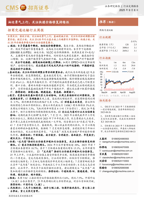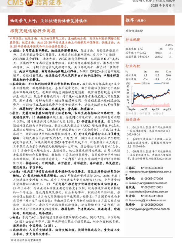 【海通证券】【202509】招商交通运输行业周报:油运景气上行,关注快递价格修复持续性-16页