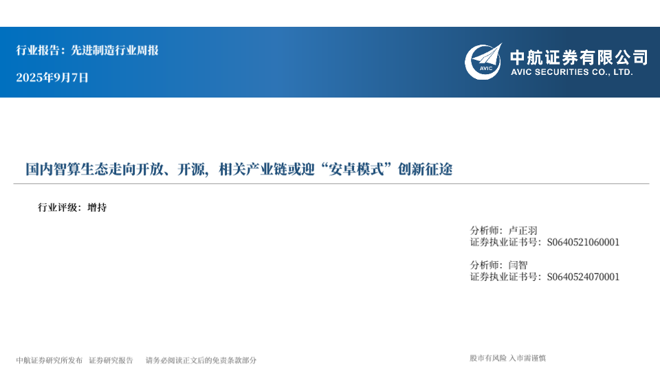 【中航证券】【202509】国内智算生态走向开放、开源,相关产业链或迎“安卓模式”创新征途-10页