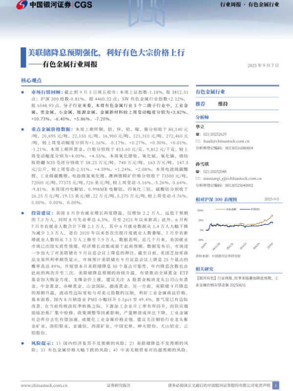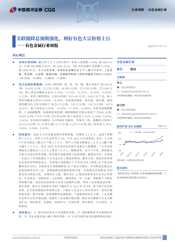 【银河证券】【202509】美联储降息预期强化,利好有色大宗价格上行-21页