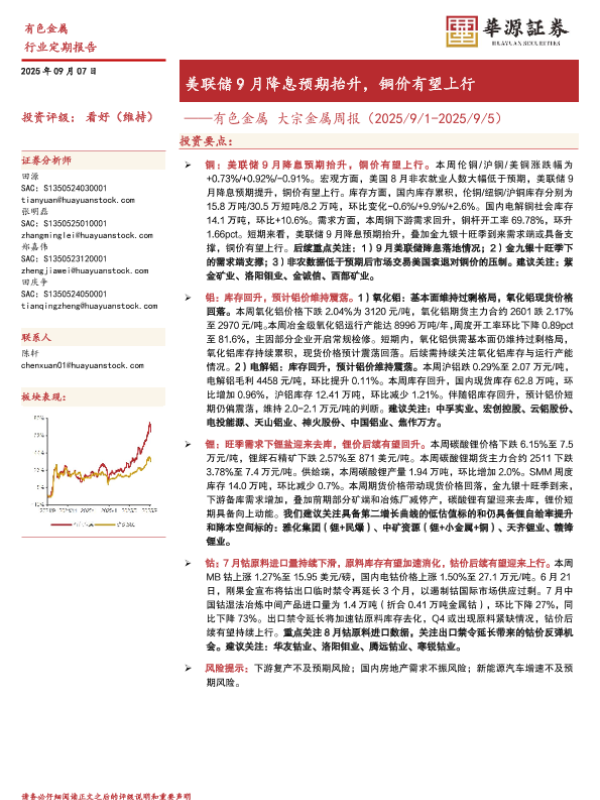 【华源证券】【202509】有色金属大宗金属周报(2025/9/1-2025/9/5)-16页