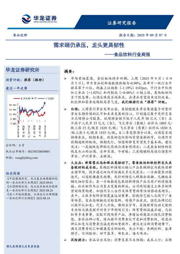 【华龙证券】【202509】需求端仍承压,龙头更具韧性——食品饮料行业周报-10页